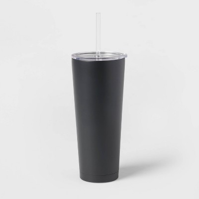25oz Double Walled Stainless Steel Vacuum Tumbler With Silicone Lid Straw Black Room Essentials Target